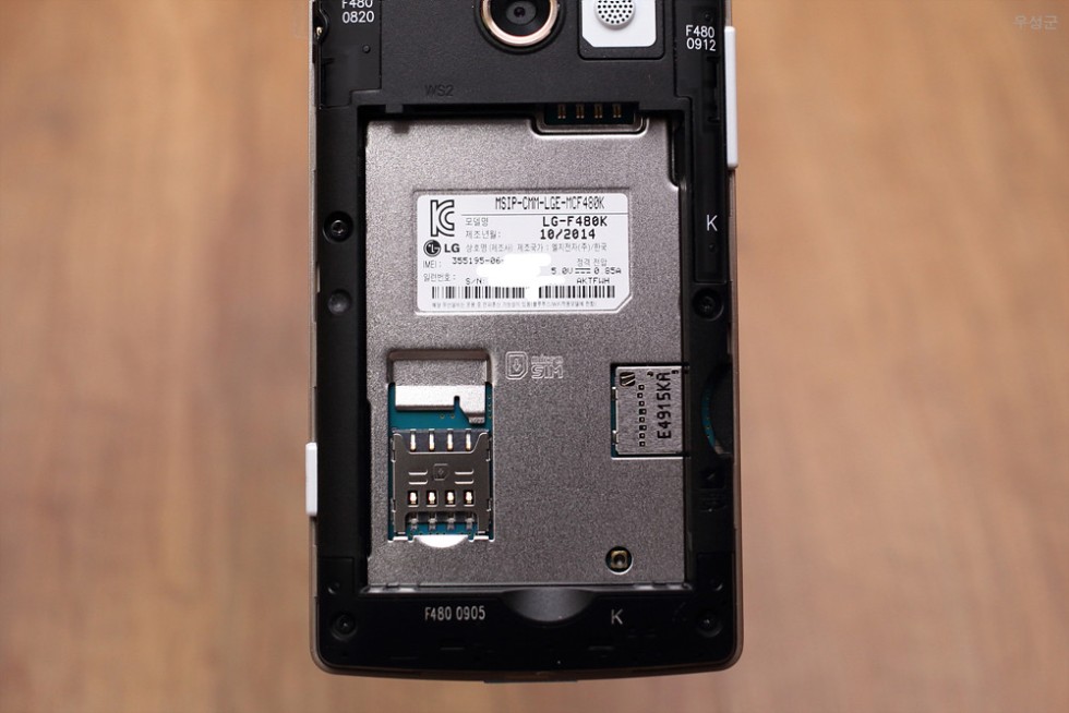 제조날자와 microUSIM 슬롯, microSD카드 슬롯이 있습니다.