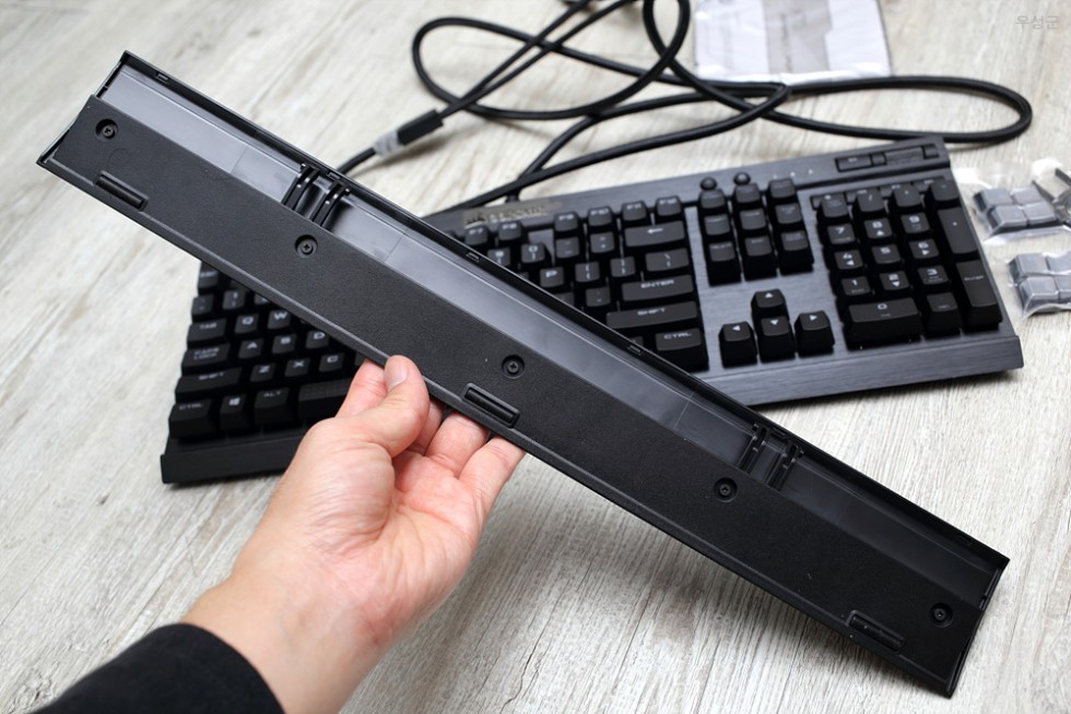 ▲ 손목 받침대입니다. 밑쪽에 키보드와 결합이 되는 부분이 있습니다.