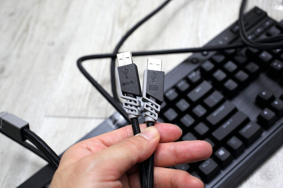 ▲ USB가 2개 있습니다. 2개를 모두 삽입해야 LED와 키보드가 정상작동됩니다.